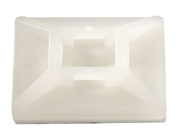Selbstklebender Befestigungssockel. Synthesekautschukkleber für universelle Anwendungen. Größtmögliche Klebefläche. Zur schnellen und flexiblen Montage kann der Kabelbinder von vier Seiten eingeschlauft werden. Die Haupteinsatzgebiete der selbstklebenden MB Sockel befinden sich im Schaltschrankbau, in der industriellen Serienfertigung und in Bereichen, wo die große Bodenplatte eine stabile Befestigung gewährleisten soll, aber eine Schraubbefestigung nicht möglich ist.