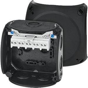 Kabelabzweigkasten aus hochwertigem Thermoplast. Für Aufputz-Anwendungen in Gebäuden oder die geschützte Installation im Freien. Mit Außenlaschen zur Befestigung und Deckelbefestigung über Schnellverschlüsse. Mit innovativer Klemmentechnik bis 4 mm², 5-polig. Kabeleinführung über elastische Dichtmembranen in Gehäusewänden und Boden. Nachträglicher Einsatz von Kabelstutzen durch Entfernen der Dichtmembrane möglich. Mit Deckelhalteband.
