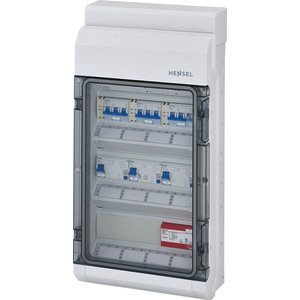 Hensel-Ladeverteiler nach DIN EN IEC 61439 für Ladepunkte werden Anschlussfertig geliefert. Die Gehäuse aus hochwertigem Thermoplast sind schutzisoliert, Schutzart IP 65. Hensel-Ladeverteiler sind optional mit Überspannungsschutz, Netzwerktechnik und Fehlerstromschutz erhältlich. Sie sind für die geschütze Installation im freien geeignet, Produkte im Außenschrank sind für die ungeschützte Installation im freien geeignet. Alle Hensel-Ladeverteiler sind UV-beständig. Hinweis: nur bis -5°C zugelassen.