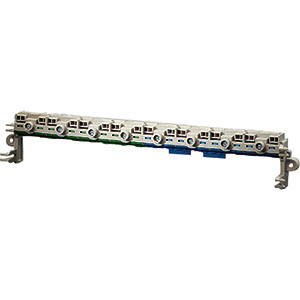 KV-PE- und N-Klemme für Kleinverteiler mit 18 Teilungseinheiten je Reihe und KV-Leergehäuse. FIXCONNECT-Steckklemmtechnik. N trennbar, für 2 unterschiedliche Potenziale.