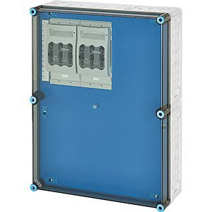 Gehäuse für den Bau von Energie-Schaltgerätekombinationen bis 630 A oder als Einzelgehäuse. Aus hochwertigem Polycarbonat schutzisoliert. Wanddurchführungen mit großen Öffnungen für die elektrische Verbindung der Gehäuse untereinander. Kabeleinführung an allen Gehäusewänden über metrische Vorprägungen oder Anbauflansche. Gehäuse zur Wandbefestigung auch über Außenlaschen oder mit Montageschienen. Gehäuse mit Sicherungslasttrennschalter NH 00, 3-polig, nach IEC 60947-3 auf Sammelschienen. Mit Zuleitungsklemmen, PE- und N-Klemmen und Berührungsschutz. Anschlussrichtung veränderbar. Deckelverschlüsse für Werkzeugbetätigung.