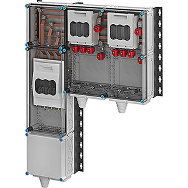 Wechselrichter-Sammler nach IEC 61439 für PV-Anlagen werden anschlussfertig geliefert. Die Gehäuse aus hochwertigem Thermoplast sind schutzisoliert, Schutzart IP 54. Wechselrichter-Sammler können um die Funktion Blitz- und Überspannungsschutz erweitert werden. Sie sind für die geschützte Installation im Freien geeignet und UV-beständig. PV-Wechselrichter-Sammler bis 220 kVA mit NH 1-Sicherungslasttrennschalter. Max. 2 x 3~ Wechselrichter. Wandbefestigung über Montageschienen aus verzinktem und pulverbeschichtetem Stahlblech.