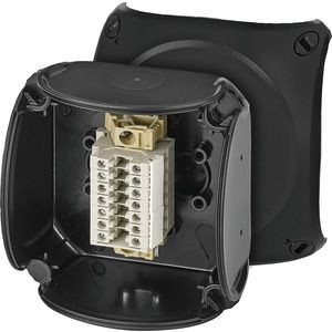 Ex-Kabelabzweigkasten aus hochwertigem Thermoplast für die ungeschützte Installation im Freien oder Aufputz-Anwendungen in Gebäuden in Ex-Zonen 2 und 22. Beständig gegen Witterungseinflüsse wie UV-Belastung durch Sonneneinstrahlung, geschützt gegen Regenwasser, temperaturbeständig und schlagfest. Deckelbefestigung über Schnellverschlüsse. Mit Außenlaschen zur Befestigung. Mit 7 Reihenklemmen bis 2,5 mm². Kabeleinführung über Bohrung an markierten Stellen auf den Gehäusewänden. Ex-Anbaukabelstutzen im Zubehör.