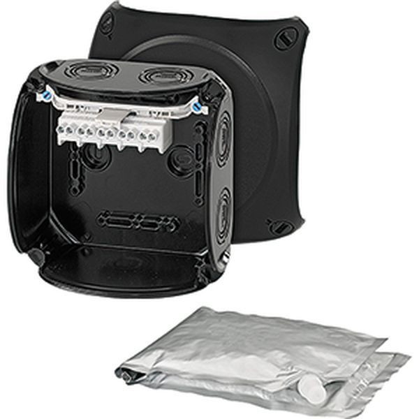 | Kurzbeschreibung | Kabelabzweigkasten 1,5-4 qmm, 3phasig, 6 qmm 1phasig, 5polig, schwarz |