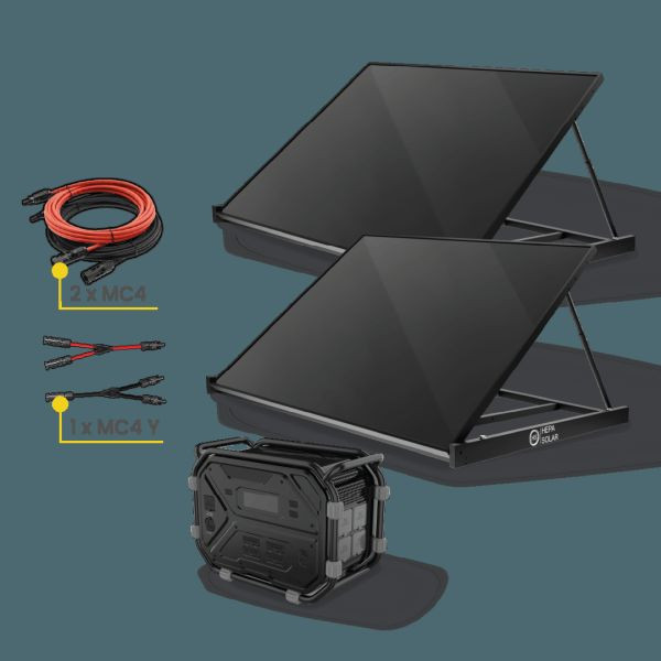 Mit der HEPA INSELLÖSUNG 880 machen Sie sich unabhängig vom Stromnetz. Das System besteht aus 2 x HEPA Basic 440 Module mit leistungsstarken HPBC Panels und vormontierten Aluminiumrahmen. Über den XT 60-Stecker laden die Panels Ihre HEPA POWERSTATION 1300 zuverlässig auf - komplett autark. Für noch mehr Energie und Kapazität kann das System mit einem HEPA POWERCUBE 2000 kombiniert werden. So kann der HEPA POWERCUBE 2200 mit bis zu 1600 Watt geladen werden und gleichzeitig die POWSTATION mit Energie versorgen.