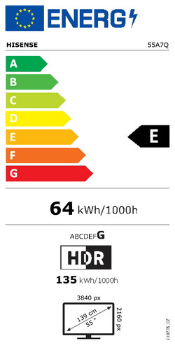 Modell: HISENSE 55A7Q, Bildschirmdiagonale: 138 cm (55 Zoll), Auflösung: 4K UHD, Bildschirmtyp: QLED-TV, EAN: 6942351420479, Lieferanten-Artikel-Nr.: 20016324, HDR-Unterstützung: HDR10, Bildwiederholrate: 60 Hz, Technologien: Quantum Dot, Wide Color Gamut, Audio: Dolby Atmos, DTS Virtual X, Dolby Audio, Empfang: DVB-T2 / T / C / S2 / S, Smart-TV Funktionen: WLAN, VIDAA U7, Game Mode Pro, USB Recording, Time Shift, HbbTV, Content Share (Android / iOS), Airplay 2, Alexa Built-In, VIDAA Voice, Bluetooth, Quad Core Prozessor, Hotel TV, Kindersicherung, Anschlüsse: HDMI, USB, CI+, Größe ohne Standfuß (BxHxT): 123 x 71 x 8 cm, Größe mit Standfuß (BxHxT): 123 x 76,3 x 27,4 cm, Gewicht: 15 kg, Farbe: Schwarz, Energieeffizienzklasse: G (2019/2013/EU), Energieverbrauch: 62 kWh je 1.000 Stunden Nutzung. Text durch KI erzeugt