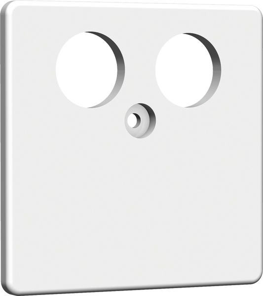 Zentralplatte zur Abeckung der classic Basisdose, TwiGa Basisdose, one. Basisdose und one.fiber Basisdose, die ausschliesslich mit Koaxmodulen bestückt sind, 50x50mm, reinweiß ähnlich RAL 9010