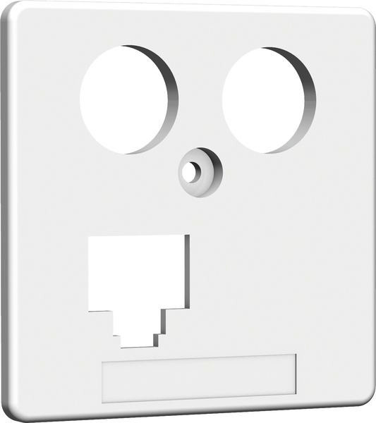 Zentralplatte zur Abdeckung der classic Basisdose, TwiGa Basisdose, one Basisidose, und one.fiber Baisisdose, bestückt mit 8/8 RJ45 Kommunikationsmodul, mit oder ohne Koaxmodul, 50x50mm, reinweiss ähnlich RAL 9010
