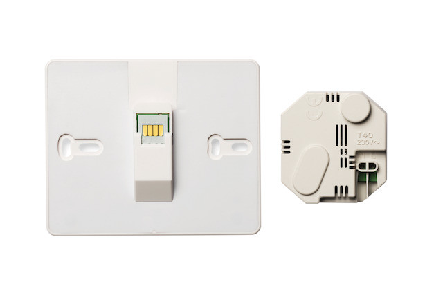 Der evohome Wandhalter mit Unterputznetzteil ist speziell für die Verwendung des evohome Bediengeräts ATC928G3027 geeignet. Im Lieferumfang ist das Netzteil sowie die Montageplatte für das Bediengerät enthalten. Netzteil und Montageplatte sind durch ein Kabel verbunden und durch Öffnen der Schraubklemmen zu trennen. Das Bedienteil lässt sich einfach und ohne Werkzeug auf die Montageplatte aufsetzen bzw. dort abnehmen.