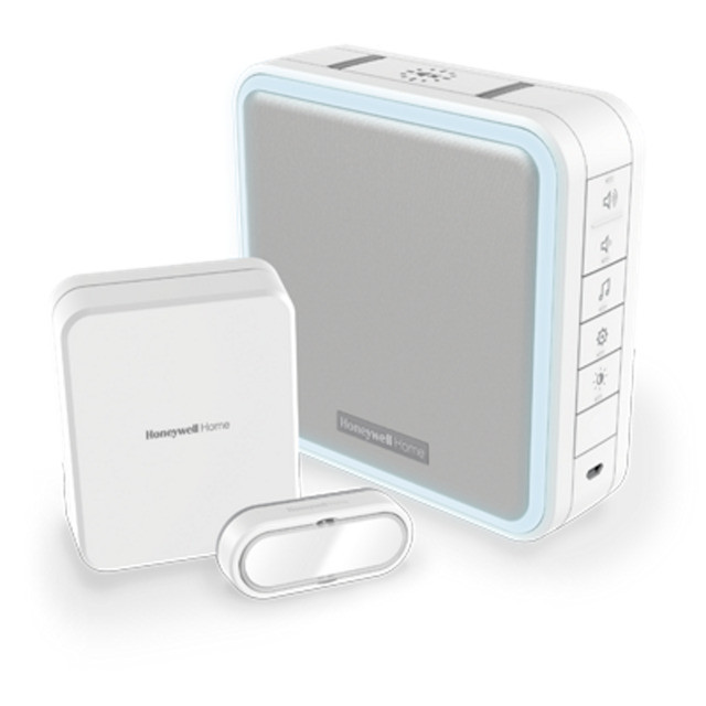 Serie 9 Einfache Installation - keine Verdrahtung erforderlich, Funkreichweite von bis zu 200 m (Bei Feldbedingungen gemessen, Wände, Zimmerdecken und Metallstrukturen reduzieren die maximale Reichweite), eingebauter Repeater/Funkverstärker vergrößert die Funkreichweite auf bis zu 400 m (Bei Feldbedingungen gemessen, Wände, Zimmerdecken und Metallstrukturen reduzieren die maximale Reichweite, zusätzlicher Funk-Gong Serie 9 wird benötigt), Honeywell-ActivLink für zuverlässige Funkreichweite, Digital verbesserter Klang mit Lautstärkeregelung, Maximale Lautstärke von 90 dB, Hörbereich bis zu 100 m, Auswahl von 8 Melodien, Schlaf-/Stummmodus, optische Meldung durch HALO-Lichtring mit zusätzlichem LED-Blitzlicht, Inklusive Halterungen, bis zu 5 Jahre Batterielebensdauer, optionaler Netzanschluss über Micro-USB. Set enthält: Funk-Gong, Klingeltaster und Erweiterungssender (inkl. Batterie CR2032 des Klingeltasters und des Erweiterungssenders), Funk-Erweiterung einer bestehenden Klingel- oder Sprechanlage, Zusätzlicher Funk-Klingeltaster für Nebeneingangstür