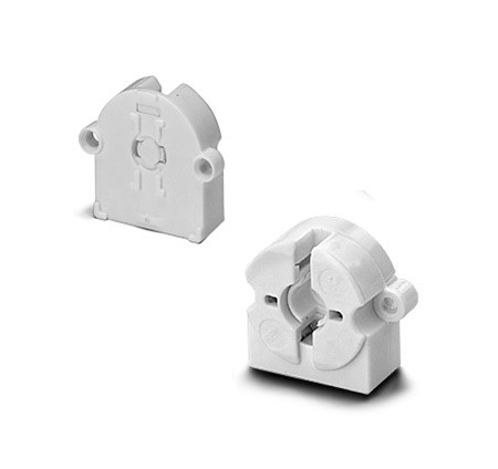 G13-Einbaufassungen für Lampen T8 und T12 Fassungsdicke: 13 mm, Gehäuse: PC, weiß, Rotor: PBT GF, weiß, T130 Nennwert: 2/500 Gewicht: 5 g Steckklemmen: 0,5-1 mm² Durchgangslöcher für Schrauben M3 Typ: 47100