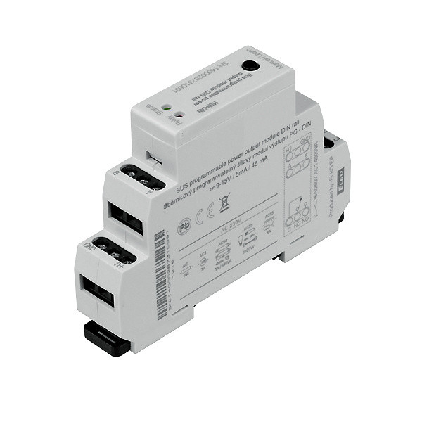 Bus-Schaltrelais für die Hutschiene zum Schalten von Lasten bis zu 230V/16A. Kopiert den Zustand eines Schaltausgangssignals des System 9000. Auf welches Signal das Relais reagiert, wird über die Software eingestellt. Belegt eine Adresse im System. Kann auf einer DIN-Hutschiene montiert werden. Spannungsversorgung über Bus. Stromaufnahme beim Ausschalten: 5mA, Stromaufnahme beim Einschalten: 45mA, I-calc =45mA. Belastbarkeit bei ohmscher Last (cosf =1): max. 16A / 230V. Belastbarkeit bei induktiver Last (cosf = 0,4): max. 8A / 230V. Halogen-Beleuchtung: max. 1KW. Minimale DC-Last: 0,5W. Galvanisch getrennt nach Schutzklasse 2. Abmessungen: 18 x 87 x 64mm (eine DIN-Einheit).