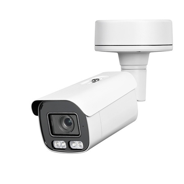 8 Megapixel Netzwerkkamera (8MP IP-Kamera mit KI-Funktionen) für innen oder außen (IP66) zur Wand- und Deckenmontage, mit 1/2,7 Zoll CMOS Sensor, 4K-Auflösung 3840 x 2160 Pixel bei bis zu 25 Bps, mind. Beleuchtung bei F1.6: 0,004 Lux (Farbe) / 0,001 Lux (s/w) / 0 Lux (mit IR). Mit 5-50mm ferneinstellbarem Tele-Motorzoom-Objektiv (horizontaler Erfassungswinkel 46-7°) mit Autofokus und Tag/Nacht-IR-Filter. Infrarot-Ausleuchtung (850nm) bis 80m. 4 weiße LED-Strahler für Farbaufnahmen bei Dunkelheit (400 Lumen, bis zu 20m, zuschaltbar über Bewegung, Timer oder App, Lichtquelle ausschließlich zur Bildaufnahme. Mit 120dB WDR- und Smart-KI-Funktionen, z.B. zur Erkennung von Menschen und Fahrzeugen. Mit eingebautem Mikrofon und Lautsprecher. Lokale Bildspeicherung auf microSD-Karte (max. 256GB, nicht im Lieferumfang) möglich. Kompatibilitätsstandard: ONVIF 22.06. Zugriff über App, Client Software oder Browser. Fernzugriff (Internetverbindung erforderlich) über P2P (ohne feste öffentliche IP-Adresse) oder DynDNS / Portweiterleitung. App für iOS (App Store) und Android (Play Store, Google-Version) kostenlos erhältlich (nicht Teil des Produkts, keine Zusage eines Servicelevels). Spannungsversorgung: PoE 802.3af (Leistungsaufnahme max. 13W) oder 12V DC (Stromaufnahme max. 850mA) über ca. 30cm lange Kabelpeitsche. Anschlussbuchsen für Alarm- sowie Audio-Ein/Aus an der Kabelpeitsche. Schlagfestes Gehäuse (Vandalismus-Schutzart IK10) inkl. Halterung mit integriertem Anschlusskasten. Farbe: weiß ähnlich RAL 9003. Gehäuseabmessungen: 95 x 93 x 166mm. Gesamttiefe: 338mm. Passendes Zubehör: Masthalterung MH153, Powerline-Adapter mit PoE NWPL01-POE.