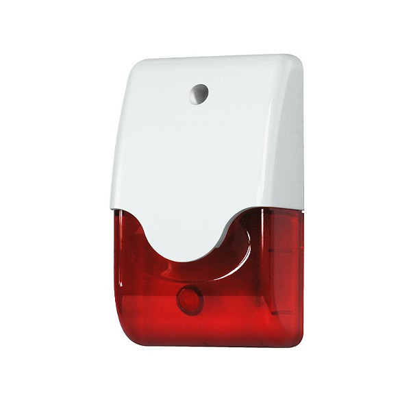 Sirene mit Blinklicht, zur Verdrahtung an eine Alarmanlage. Für Inneneinsatz (außen an geschützter Stelle). Lautstärke: 104 dB(A). Betriebsspannung: 12V DC, 200mA. Ansteuerung des Blinklichts ist getrennt möglich. Mit Anschlusslitzen (ca. 25cm Länge) und rückseitigem Sabotageschalter. Gewicht 110g, Abmessungen: 74 x 120 x 40mm.