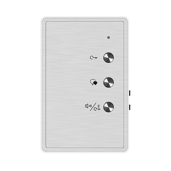 Audio-Innenstation für Video-Türsprechsystem VT200, mit Freisprechfunktion, auch als Zusatzgong verwendbar. 3 auswählbare Klingeltöne für Türruf, Etagenruf und Internruf. Tasten für Rufannahme, Türöffnersteuerung und internen Ruf. Interner Anruf innerhalb einer Wohneinheit möglich. Verpolungssicherer 2-Draht-Bus-Anschluss an ein VT200 Systemnetzgerät. Inkl. Anschluss für Etagenruftaster. Bis zu 3 Innenstationen pro Ruftaste können im System betrieben werden. Spannungsversorgung: 24-29V DC, max. 2,1W aus Systemnetzgerät. Farbe: weiß / silber. Lieferung inkl. Wandhalterung. Gehäuseabmessungen: 90 x 138 x 18mm.