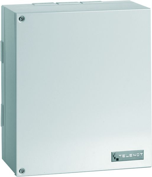 16 Meldegruppen, busorientiertes System für 2 x 63 Busteilnehmer und 16 konventionelle MG-Eingänge, optional bis 32. Bis zu 8 Sicherungsbereiche (+Z-Bereich) realisierbar. Scharfschaltung über konventionelle Schaltorgane oder mit HF-Lesern, 2 Leser-Schnittstellen integriert. Lieferung ohne erforderliche(s) Bedien- und Anzeigetableau(s). Zentralenvernetzung bis 128 MG und 504 Busadressen, 21-116 Transistorausgänge, 3 bis 12 Relaisausgänge. Parallele-/serielle Schnittstellen, EIB-Schnittstelle optional. Speicher für 2048 Ereignisse, Einbauplatz für Telefonwählgerät und Erweiterungsplatine. Mit Netzteil und Akkufach 2x12 Ah. Maße: B/H/T 330x390x170 mm, optional verschiedene Gehäusevarianten.