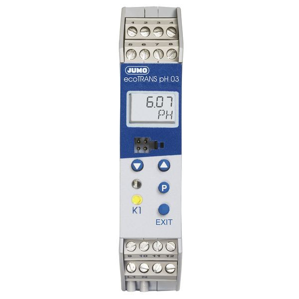 Das Mess- und Schaltgerät zur Hutschienenmontage misst und regelt, je nach Konfiguration, den pH-Wert oder die Redox-Spannung in wässrigen Lösungen. Der Messumformer besitzt zwei analoge Eingänge. Der erste Analogeingang (Haupteingang für pH-Wert bzw. Redox-Spannung) ist für den Anschluss von Einstabmessketten bzw. Elektroden mit getrennter Bezugselektrode vorgesehen. Das Gerät ist auch für den Anschluss von Antimon-Elektroden vorbereitet. An den zweiten Analogeingang kann ein Widerstandsthermometer Pt100, bzw. Pt1000 angeschlossen werden. Es stehen zwei analoge Ausgänge und ein Relais-Wechselkontakt zur Verfügung. Dem Relaiskontakt kann entweder der Hauptwert (pH-Wert oder Redox-Spannung) oder die Temperatur zugeordnet werden. Die Geräte werden über Tasten und das integrierte LC-Display bedient und konfiguriert. Alternativ kann dies auch sehr komfortabel über den Setup-Anschluss (Notebook / PC) mit dem optionalen Setup-Programm erfolgen. Mit dem Setup-Programm ist auch der Ausdruck der Konfigurationsdaten möglich. Das erleichtert die Anlagendokumentation. Die Geräte werden mit einem Kalibrierzeugnis ausgeliefert, in dem die Geräte- und Abgleichdaten dokumentiert sind. Die Spannungsversorgung erfolgt über ein Netzteil DC 20..30 V.