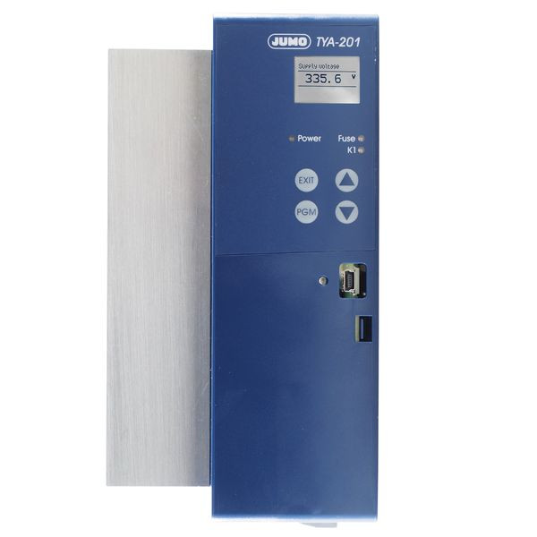 Der einphasige Thyristorleistungssteller in Sparschaltung arbeitet im Impulsgruppenbetrieb mit unterlagerter U²-Regelung. Das Gerät stellt alle Prozess- und Konfigurationsparameter übersichtlich in einem LC-Display dar und ist über 4 frontseitige Tasten einfach zu bedienen. Prozessfehler werden durch ein Störmelderelais gemeldet. Prozesswerte lassen sich auf einen Analogausgang ausgeben. Einsatzbereiche sind überall dort, wo größere ohmsche und induktive Lasten zu schalten sind, z. B. im Industrieofenbau und bei der Kunststoffverarbeitung.