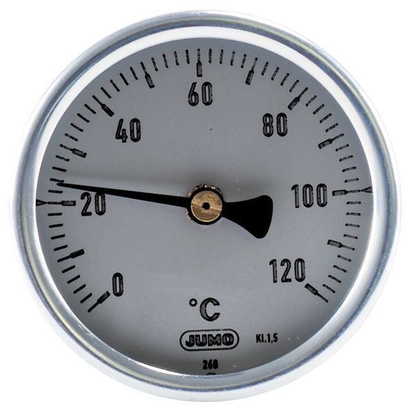 | Kurzbeschreibung | Bimetallthermometer, Klasse 1,5, Anzeigebereich 0 bis 120°C, Einbaulänge 50 mm |