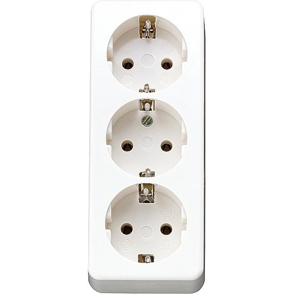 | Kurzbeschreibung | SCHUKO®-Dreifach-Steckdose, ohne Krallen, Duroplast, alpinweiß |