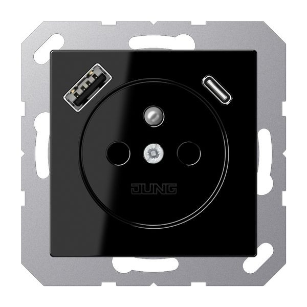 | Kurzbeschreibung | Steckdose, französisch/belgisches System, 16 A 250 V ~, mit USB-Ladegerät, 1 x Typ A + 1 x Typ C, Safety Plus, Serie A, schwarz |