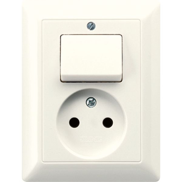 | Kurzbeschreibung | Steckdose ohne Schutzkontakt 16 A 250 V ~ mit Schalter Universal Aus-Wechsel 10 AX 250 V ~, Schraubklemmen, Duroplast, Serie AS, weiß (ivory) |