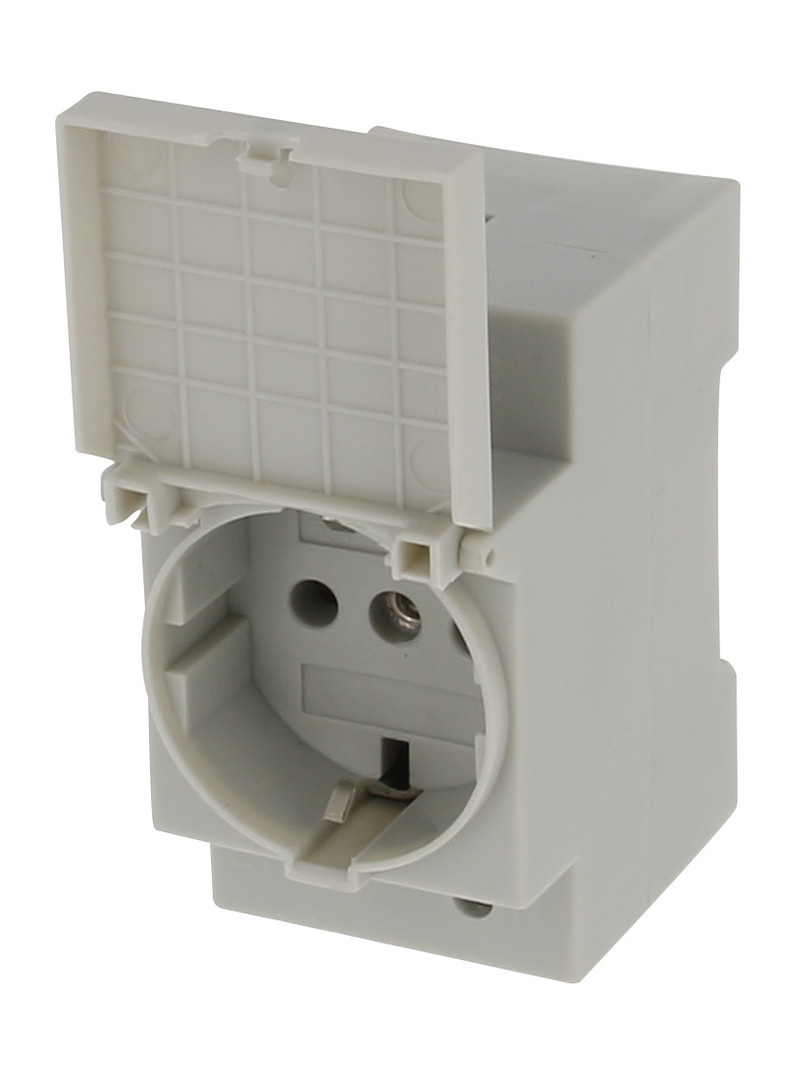 | Kurzbeschreibung | Verteiler-Einbausteckdose grau mit Deckel für Hutschiene 35mm |