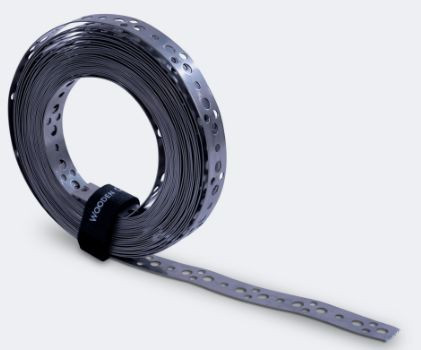Lochband als Windverband. Eine Rolle Lochband ist 10 Meter lang. Material: Edelstahl A2 (1.4301)
