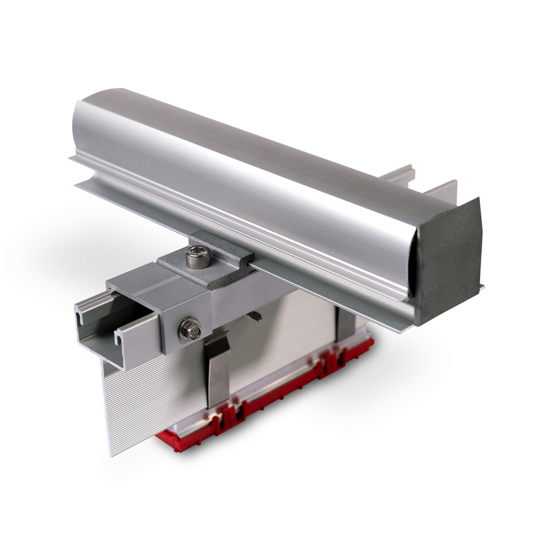 Ausstellungsstück des K2 WallPV FacadeRail Systems.