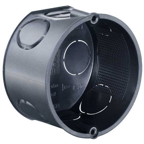 VDE-geprüft Gerätedose ohne Stutzen, Tiefe 42 mm (1050-00). Installationsart: Basis-Installation | Anwendungsgebiet: Für Einbaugeräte | Tiefe: 42 mm