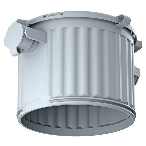 HaloX® 100 für Ortbeton (1281-00). Für die Verarbeitung im Ortbeton ist das formstabile HaloX®-System modular aufgebaut. Drei Gehäusedurchmesser mit einer Vielzahl an runden, quadratischen sowie universellen Frontteilen ermöglichen die Integration von Leuchten und Lautsprechern bis zu einem Einbaudurchmesser von 250 mm ? auch bei Sichtbeton. Mit Tunnel bietet das System ausreichend Raum für die Aufnahme von Betriebsgeräten, z. B. LED-Treiber. Optionale Verlängerungsringe dienen der Vergrößerung der Einbautiefe. Alle Frontteile sind feuchtigkeitsabweisend und können bereits vor dem Verlegen der ersten Bewehrung exakt positioniert und aufgenagelt werden. Gehäuse und Frontteile werden kraftschlüssig und stabil miteinander verrastet und lassen sich auch nachträglich noch frei ausrichten. Durch die werkzeuglose Öffnungstechnik mit Kombinationseinführung M20/M25 können Rohre einfach und schnell eingeführt werden und selbst bei Fehlbelegung lässt sich die Einführung einfach wieder verschließen. Sie bietet eine sichere Rohrrückhaltung mit Tiefenanschlag, so dass ein nachträgliches innenseitiges Kürzen der Rohre entfällt. Nach dem Vergießen lassen sich Frontteile mit definiertem Einbaudurchmesser durch einen gezielten Hammerschlag öffnen. Die Frontteile für universelle Öffnungsmaße können flächig an- oder überspachtelt werden. Anschließend erfolgt die Erstellung der gewünschten Installationsöffnung mit herkömmlichen Fräswerkzeugen, z. B. MULTI 4000. Installationsart: Ortbeton | Max. Einbautiefe Leuchte / Lautsprecher: 110 mm | Tiefe inkl. Frontteil: 120 mm | Betriebsgeräte Zusatzraum: Ohne Zusatzraum | Einbaudurchmesser Leuchte / Lautsprecher: 0-100 mm