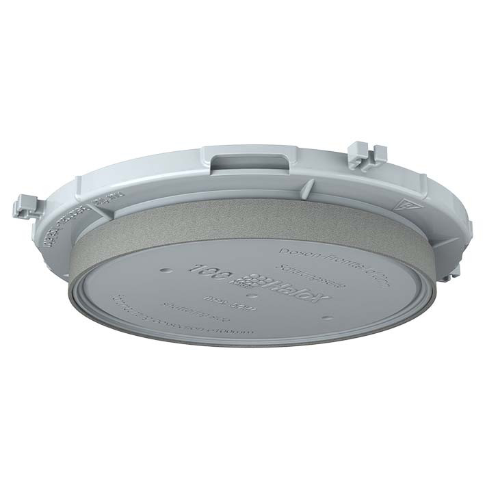 HaloX® 100 Frontteile für Sichtbeton (1281-67). Für die Verarbeitung im Ortbeton ist das formstabile HaloX®-System modular aufgebaut. Drei Gehäusedurchmesser mit einer Vielzahl an runden, quadratischen sowie universellen Frontteilen ermöglichen die Integration von Leuchten und Lautsprechern bis zu einem Einbaudurchmesser von 250 mm ? auch bei Sichtbeton. Mit Tunnel bietet das System ausreichend Raum für die Aufnahme von Betriebsgeräten, z. B. LED-Treiber. Optionale Verlängerungsringe dienen der Vergrößerung der Einbautiefe. Alle Frontteile sind feuchtigkeitsabweisend und können bereits vor dem Verlegen der ersten Bewehrung exakt positioniert und aufgenagelt werden. Gehäuse und Frontteile werden kraftschlüssig und stabil miteinander verrastet und lassen sich auch nachträglich noch frei ausrichten. Durch die werkzeuglose Öffnungstechnik mit Kombinationseinführung M20/M25 können Rohre einfach und schnell eingeführt werden und selbst bei Fehlbelegung lässt sich die Einführung einfach wieder verschließen. Sie bietet eine sichere Rohrrückhaltung mit Tiefenanschlag, so dass ein nachträgliches innenseitiges Kürzen der Rohre entfällt. Nach dem Vergießen lassen sich Frontteile mit definiertem Einbaudurchmesser durch einen gezielten Hammerschlag öffnen. Die Frontteile für universelle Öffnungsmaße können flächig an- oder überspachtelt werden. Anschließend erfolgt die Erstellung der gewünschten Installationsöffnung mit herkömmlichen Fräswerkzeugen, z. B. MULTI 4000. Installationsart: Ortbeton | Frontteil Form: Runder Deckenauslass | Einbaudurchmesser Leuchte / Lautsprecher: 100 mm | Installationsart: Sichtbeton | Leuchtenblende min. Ø: 112 mm