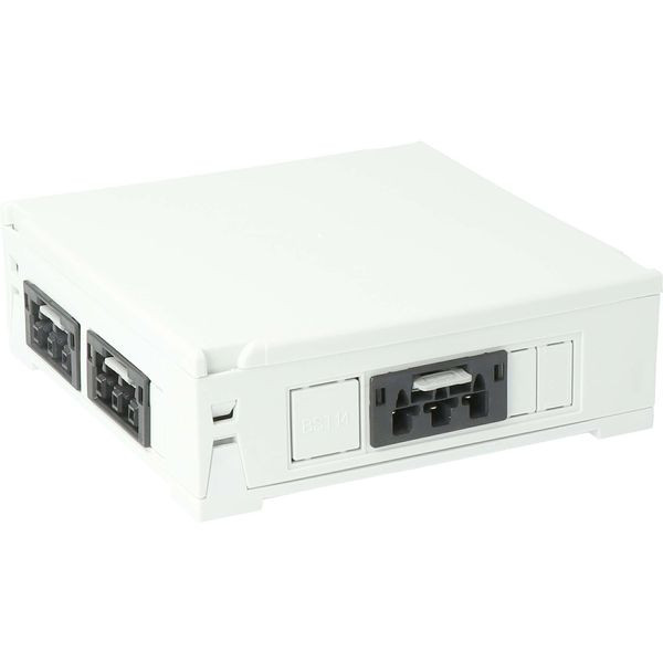 Steckbar 100% Gehäuse PD, WAGO WINSTA® MIDI, in: 3pol sw, out:4x 3pol sw, 120x120x40 mm, lichtgrau (AT3218).
