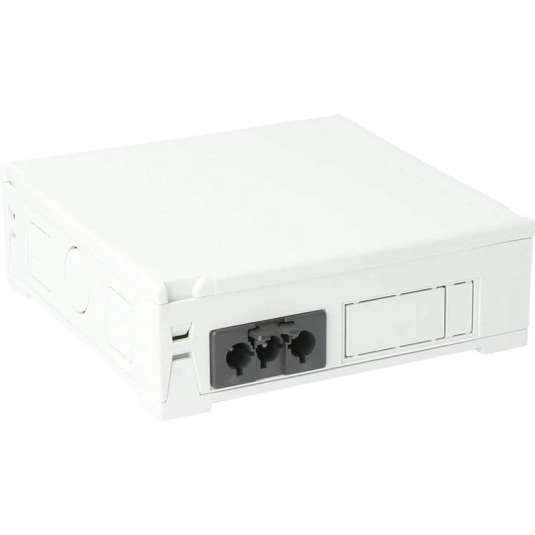 Steckbar 100% Gehäuse PD, Wieland GST18, in: 3pol sw, out: 2x 3pol sw (AT2533). Halogenfrei: Ja | Länge: 120 mm | Breite: 120 mm | Tiefe: 40 mm | Bemessungsspannung: 400 V | Schutzart: IP20 | Farbe: lichtgrau