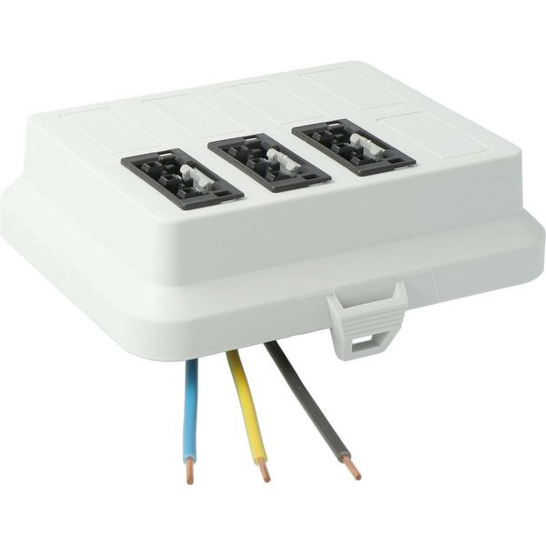 Steckbar Frontteil AK2, WAGO WINSTA® MIDI, in: 3pol H07V-U, out:3x 3pol sw L1, 125x100x42 mm, lichtgrau (AT7705).