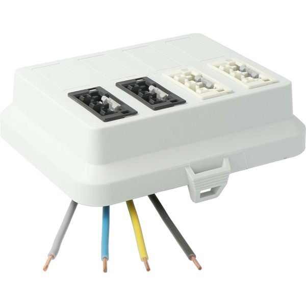 Steckbar Frontteil AK2, WAGO WINSTA® MIDI, in: 4pol H07V-U, out:je 2x3pol swL1/ wsL2, 125x100x42 mm, lichtgrau (AT7707).