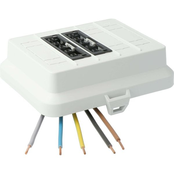 Steckbar Frontteil AK2, WAGO WINSTA® MIDI, in: 5pol H07V-U, out:2x5pol sw L1+L2+L3, 125x100x42 mm, lichtgrau (AT7710).