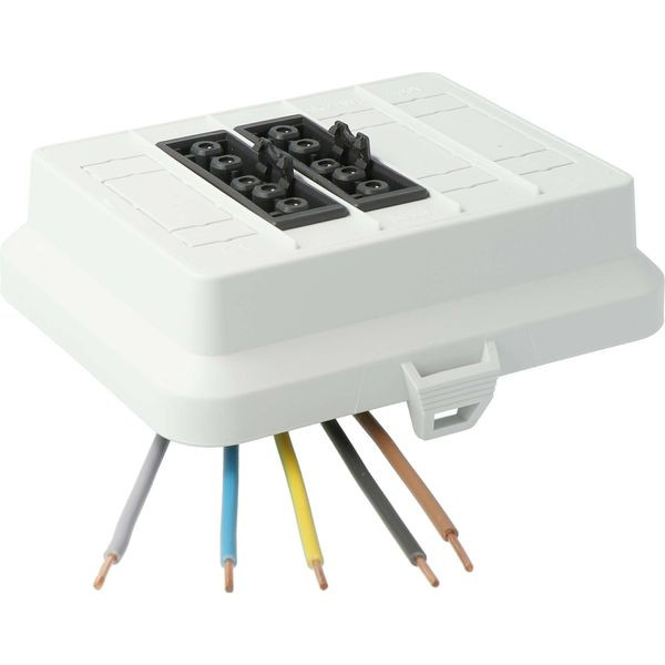 | Kurzbeschreibung | Steckbar Frontteil AK2, Wieland GST18,, in:5pol H07V-U, out:2x5pol sw L1+L2+L3, 125x100x42 mm, lichtgrau |