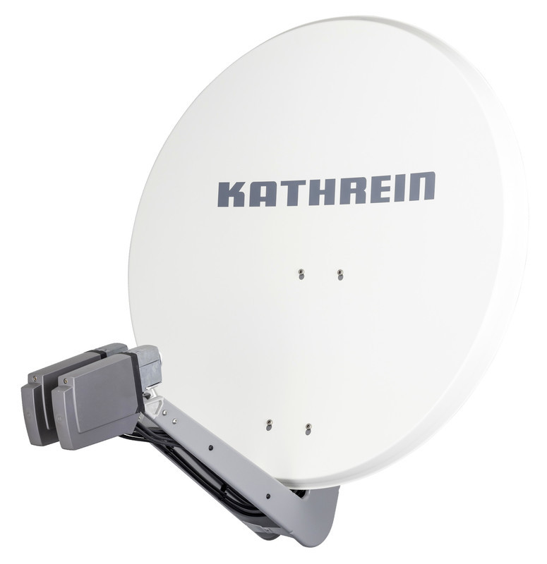 Der Reflektor ist pulverbeschichtet, Speisesystemhalterung aus verzinktem Stahlblech, kunststoffbeschichtet, Schelle aus Stahlblech feuerverzinkt, am Tragarm können ohne zusätzliche Bauteile zwei Universal-Speisesysteme zum Empfang von 3° bis 4° oder 6° auseinander liegenden Satelliten befestigt werden, mit Aufnahmeplatte.