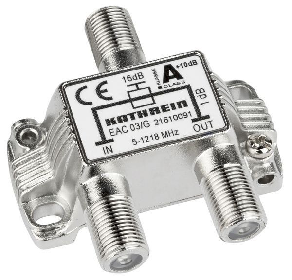 1fach-F-Abzweiger 16 dB, 5-1218 MHz, F-Connector, Trennkondensatoren an Ein- und Ausgaengen, Schirmungsklasse A gem. CENELEC EN 50083-2, Vodafone- KDG-Freigabe