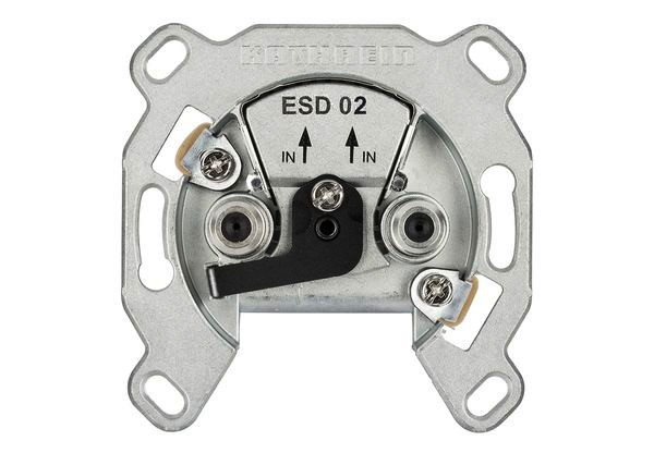 Sat-Einzelanschlussdose 2fach, 0-2400 MHz, für zwei getrennte Zuleitungen, DC-Durchlass, Anschlussdämpfung: TV 0,3 dB, SAT 0,8 dB