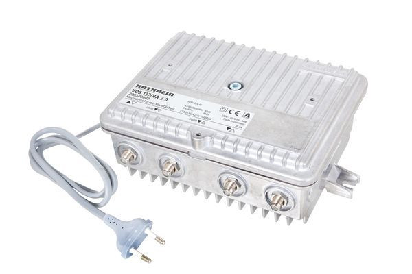 Hausanschluss-Verstaerker; 47-85-1006 MHz; F-Connector; Verstaerkung 40-34-30 dB; Pegelsteller/ Entzerrer typ. 20 dB; 113-116 dBµV 60-dB-CTB/CSO; Cenelec 42 Traeger; ortsgespeist