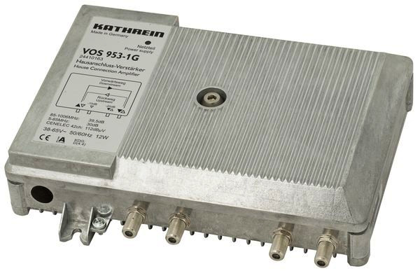 Hausanschlussverstaerker 1GHz, ueberwachbar, ferngespeist, F-Anschluesse, Max. Betriebspegel typ. 112-116 dBuV, Verstaerk. typ.38dB 1GHz