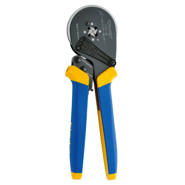 Presswerkzeug für Aderendhülsen und Zwillingsaderendhülsen 0,08 - 16 mm², Vierkantpressung, jetzt auch mit Vierkantpressung, mit Sperrvorrichtung für gleichmäßig kontrollierte Pressergebnisse, seitliche Hülseneinführung (Seitenpressung)