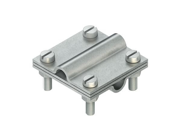 Kreuz-Verbinder nach DIN EN 62561 (VDE 0185-561) inkl. Klemmplatte mit Zylinderkopfschrauben nach DIN EN ISO 1207 und Sechskantmuttern nach DIN ISO 4032, für oberirdische Verbindungen und Blitzschutz. Abmessungen (ca. Maße) Klemmplatten B x L x t : 54 x 54 x 2 mm Zwischenplatte B x L x t : 54 x 54 x 2 mm Verbindungsmöglichkeiten : 2 Rundleiter Ø8 - Ø10 mm (1318/10, 2318/10) oder 2 Flachleiter 30x4 mm (2317/4/30) oder 1 Rundleiter Ø8 - Ø10 mm (1318/10, 2318/10) und 1 Flachleiter 30x4 mm (2317/4/30) Werkstoff Verbinder : Stahl, feuerverzinkt Werkstoff Schrauben/Muttern : Stahl, feuerverzinkt