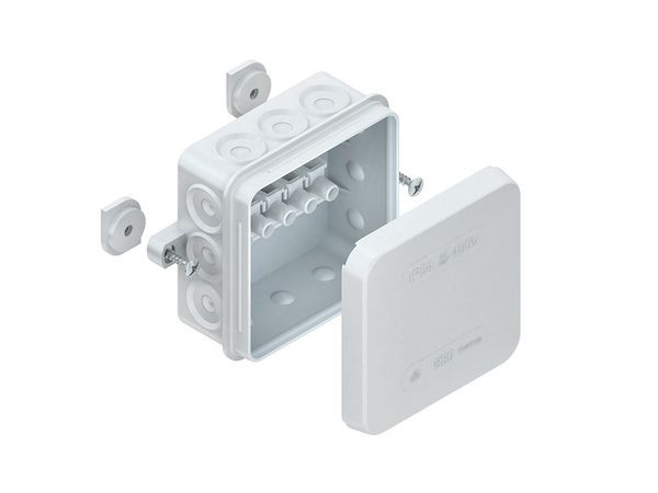 | Kurzbeschreibung | Verbindungsdose, mit 5-pol. Anschlussklemme 2,5 mm², Kunststoff PE, RAL 7035, lichtgrau |
