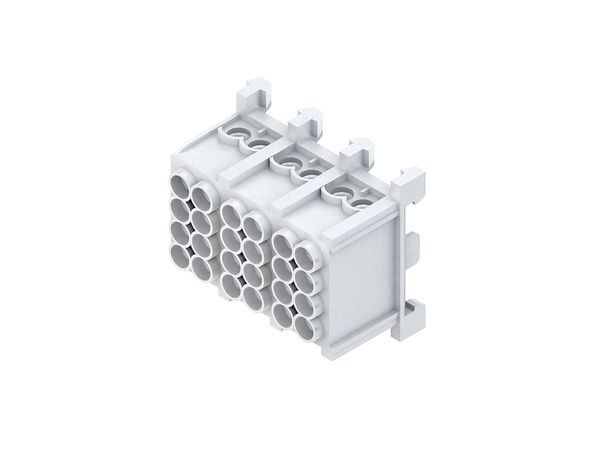 Hauptleitungs-Abzweigklemme 25 mm² nach DIN VDE 0603-3-1 allseitig fingersicher, mit Schnappbefestigung zur senkrechten und waagerechten Anbringung auf Tragschiene TS 35 mm deren Anschlussmaße DIN EN 60715 entsprechen, halogenfrei. Abmessungen (ca. Maße) H x B x L : 37 x 50,5 x 61,5 mm Klemmbereich eindrähtig, starr-mehrdrähtig, flexibel-feindrähtig : 1,5 - 25,0 mm² Anschlussmöglichkeiten eindrähtig : 8 x 1,5 mm², 5 x 2,5 mm², 4 x 4,0 mm², 3 x 6,0 mm², 1 x 10,0 mm², 1 x 16,0 mm² starr-mehrdrähtig : 8 x 1,5 mm², 4 x 2,5 mm², 3 x 4,0 mm², 2 x 6,0 mm², 1 x 10,0 mm², 1 x 16,0 mm², 1 x 25,0 mm² flexibel-feindrähtig : 8 x 1,5 mm², 4 x 2,5 mm², 3 x 4,0 mm², 2 x 6,0 mm², 1 x 10,0 mm², 1 x 16,0 mm² Polzahl : 3 Werkstoff Isolierteil : PA Werkstoff Kontakt : Messing Werkstoff Klemmschrauben : galvanisch verzinkter Stahl mit Podzidrive-Kombikreuzschlitzkopf Nennspannung : 400 V Farbton : lichtgrau RAL : 7035 (ähnlich)