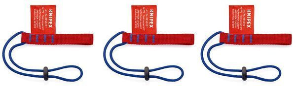 00 50 02 T BK Adapterschlaufe Für die zuverlässige Werkzeugsicherung: In zahlreichen Falltests überprüfte Haltbarkeit für Werkzeuge bis 1,5 kg. Ermöglicht zuverlässigen Schutz vor Herunterfallen und kann schwere Verletzungen, Sachschäden oder den Verlust des Werkzeugs verhindern. Verringert die Risken des Werkzeugverlustes, der Verletzung von Lebewesen sowie der Beschädigung von Gegenständen. Für Arbeiten in Höhe, Tiefe oder an Seilen: für Industrieklettern, Schachtarbeiten, Rettungsdienste, Baumpflege, Brückensanierung, Windkraft oder auf See. In Kombination mit dem Materialkarabiner und der Fangleine sind vielseitige Befestigungsvariationen möglich. Adapterschlaufe lässt sich direkt mit der Kordelseite oder dem Karabiner an der Kletterausrüstung oder dafür vorgesehenen Fixpunkten befestigen, schneller Wechsel der Sicherung von der Werkzeugtasche zur Fangleine. Mit Schlaufe aus vernähtem Flachgurt an einem Ende und eingenähter Kordel mit Kordelstopper am anderen Ende, jeweils vierfach vernäht. Passend für alle KNIPEX-Zangen mit Befestigungsöse. Keine PSA (persönliche Schutzausrüstung): nicht geeignet zur Personensicherung!. Inhalt: 3 Adapterschlaufen. - Belastbarkeit: 1,5 kg / 3,3 lbs