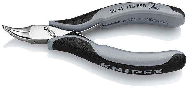 | Kurzbeschreibung | KNIPEX 35 42 115 ESD Elektronik-Greifzange ESD mit durchgestecktem Gelenk mit Mehrkomponenten-Hüllen spiegelpoliert 115 mm |