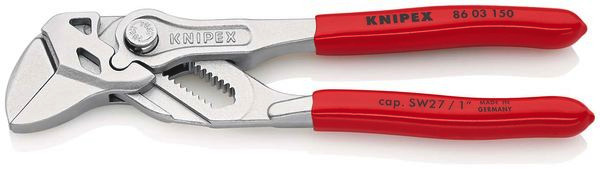 | Kurzbeschreibung | KNIPEX 86 03 150 Zangenschlüssel Zange und Schraubenschlüssel in einem Werkzeug mit Kunststoff überzogen verchromt 150 mm |